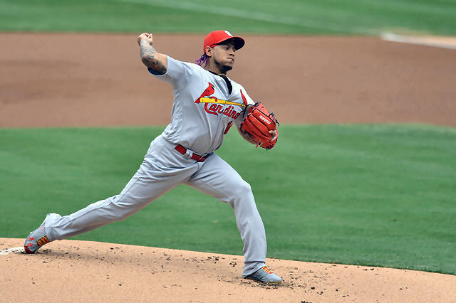 Cardinals starting pitcher Carlos Martinez (18) pitches during the