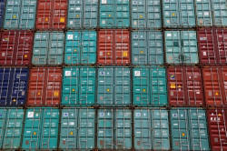 A stack of shipping containers are pictured in the Port of Miami in
