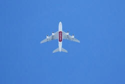 An Emirates Airlines Airbus A380-800, with Tail Number
