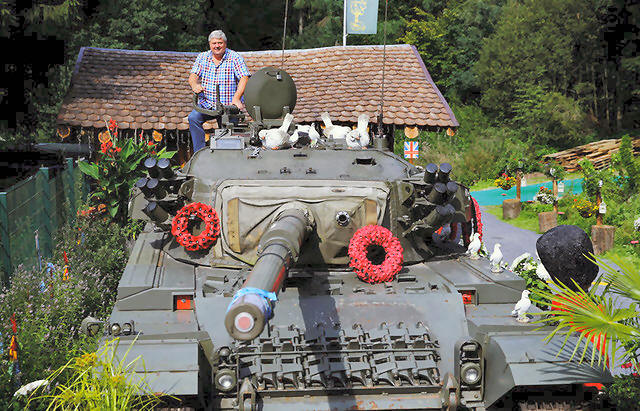 Britain, poses atop of a demilitarised Centurion tank he bought from
