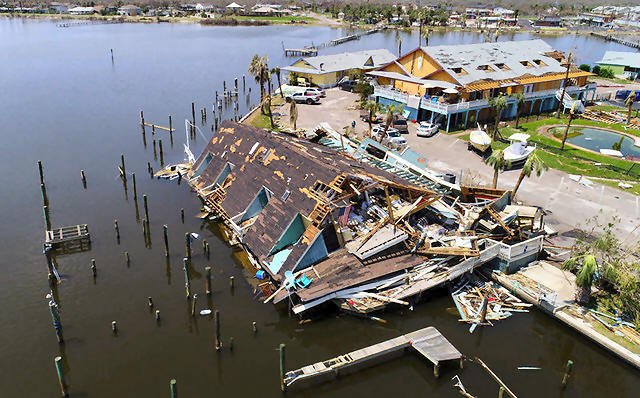 An aerial photo shows damage caused by Hurricane Harvey in Rockport,