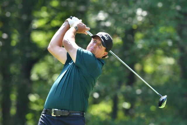 Phil Mickelson hits his drive on the 2nd hole during the final round