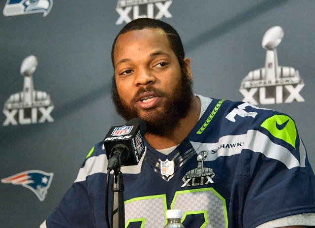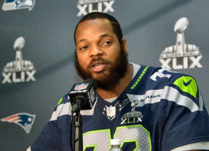 Seattle Seahawks defensive end Michael Bennett at press conference