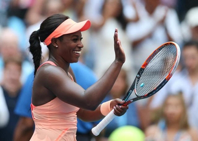 Sloane Stephens of the United States celebrates after match point