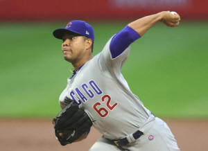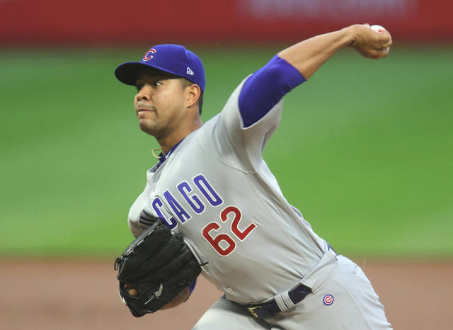 Cubs starting pitcher Jose Quintana (62) delivers a pitch against