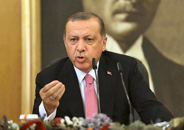 Turkish President Tayyip Erdogan speaks during a news conference at