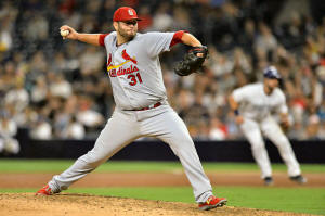 Cardinals starting pitcher Lance Lynn (31) pitches during the sixth
