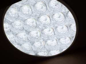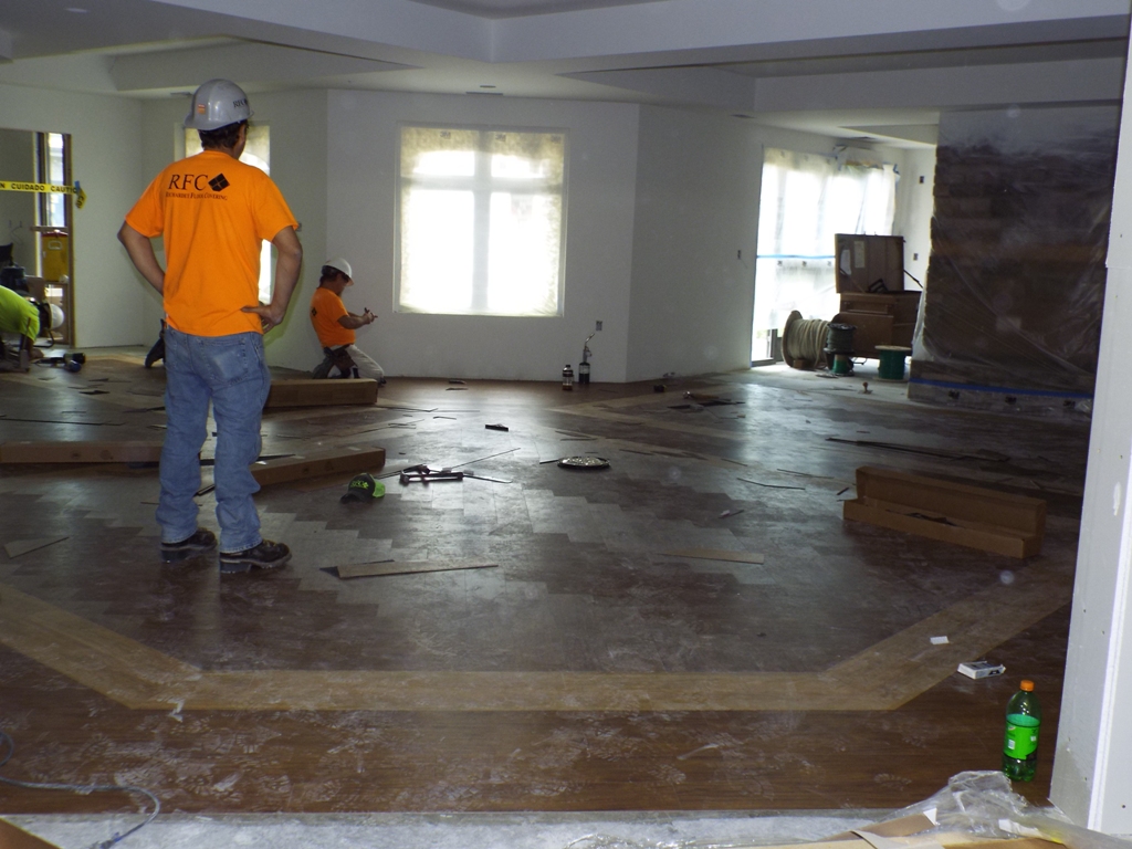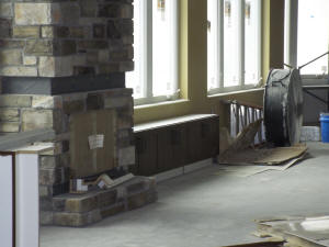 into the vestibule, a fireplace will be the centerpiece of the area,