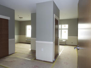 The rehab area is shaped as a backward ‘L’ and offers sitting rooms