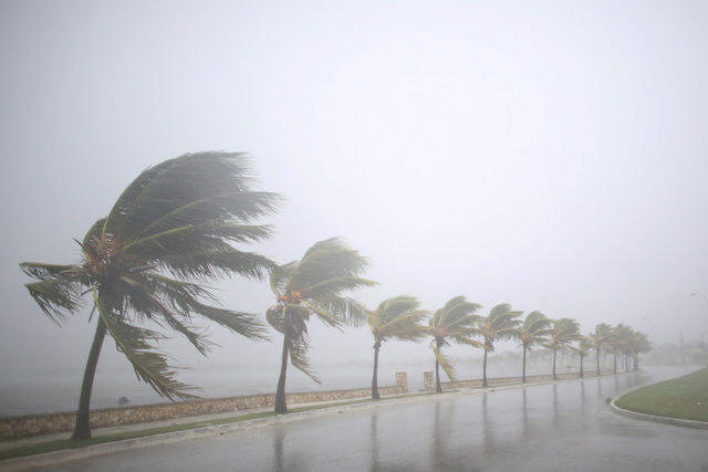 Palm trees sway in the wind prior to the arrival of the Hurricane