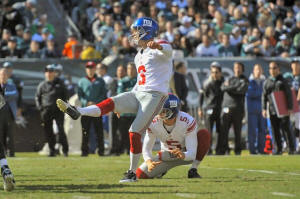 New York Giants kicker Josh Brown (3) watches his field goal attempt