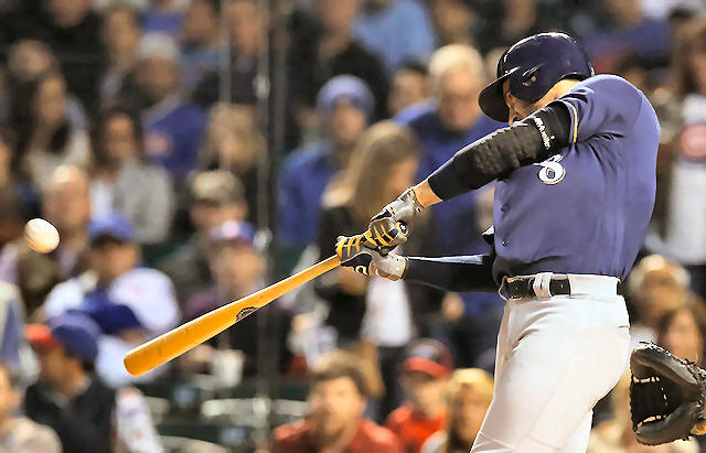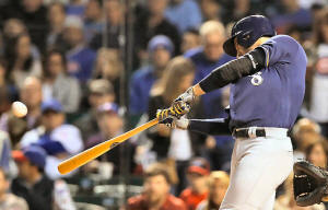 Brewers left fielder Ryan Braun (8) hits a two-run home run against