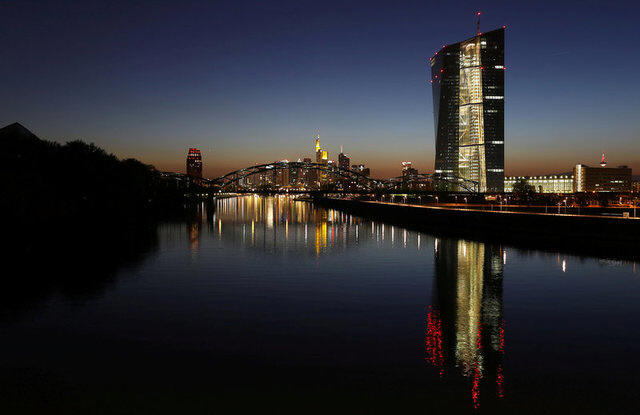 The headquarters of the European Central Bank (ECB) (R) is seen next