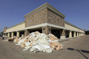 Clean-up continues at a neighborhood shopping plaza in the aftermath