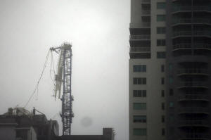 High winds also snapped the boom of a crane erected on top of a