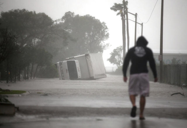 A truck is seen turned over as Hurricane Irma passes south Florida,