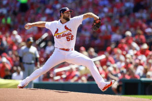 Cardinals starting pitcher Michael Wacha (52) pitches during the