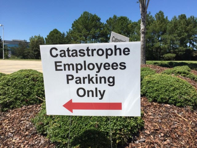A sign directing insurance company State Farm claims teams in