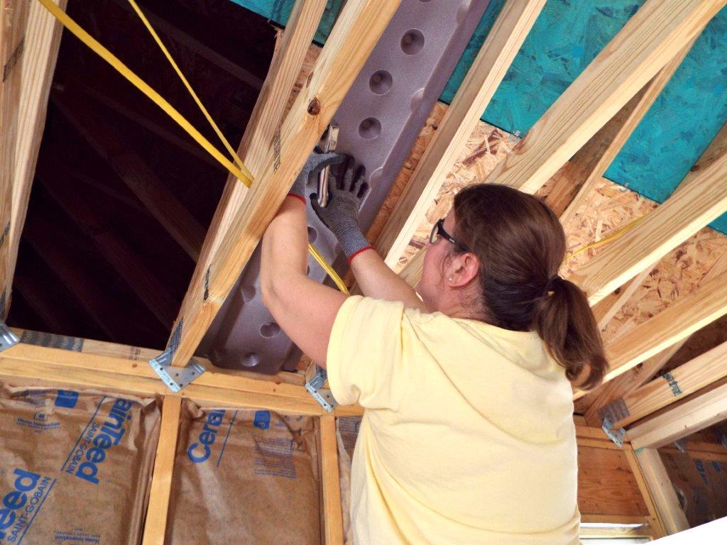 In the morning Ohler and Teagarden aided with insulation. In the afternoon it was climbing ladders to staple aeration vents to the roof.