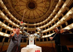 The robot conducted three of the 18 pieces performed on Tuesday