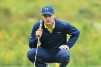 Jordan Spieth lines up his putt on the 3rd hole during