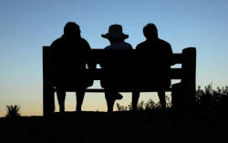 Elderly people sit on a park bench after sun set in Encinitas,