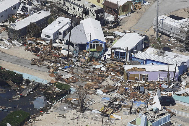 A destroyed trailer park is pictured in an aerial photo in the Keys