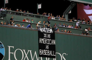 Campaigners unveil banner linking racism and baseball at Red Sox