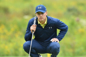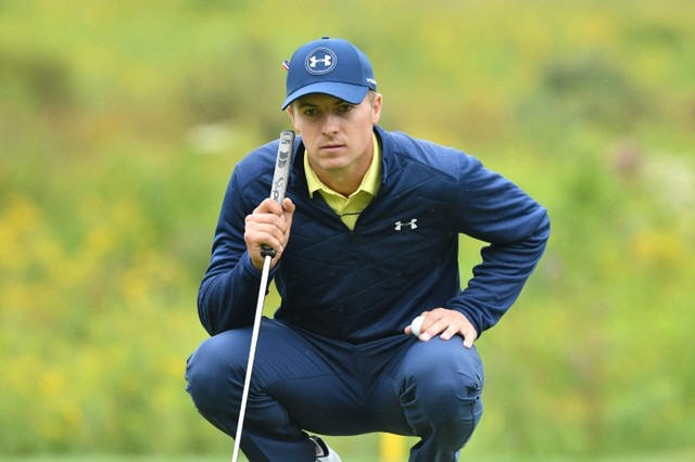 Jordan Spieth lines up his putt on the 3rd hole during the third