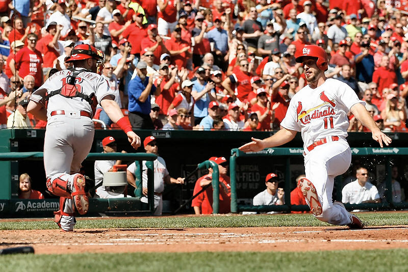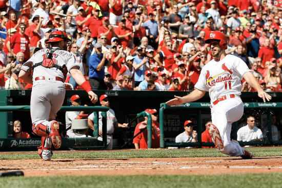St. Louis Cardinals shortstop Paul DeJong (11) scores a