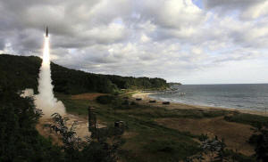 South Korean troops fire Hyunmoo Missile into the waters of the East