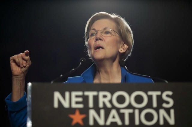 Senator Elizabeth Warren (D-MA) addresses the audience at the