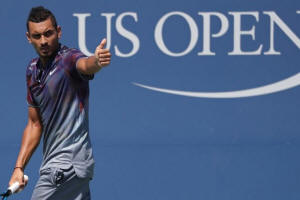 Nick Kyrgios of Australia gestures against John Millman of Australia