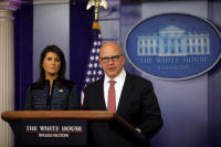 briefing accompanied by U.S. Ambassador to the UN, Nikki Haley