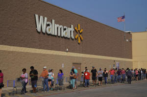 People line up at a Walmart store that reopened Friday after