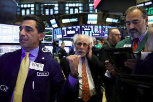 Traders work on the floor of the New York Stock Exchange (NYSE) in