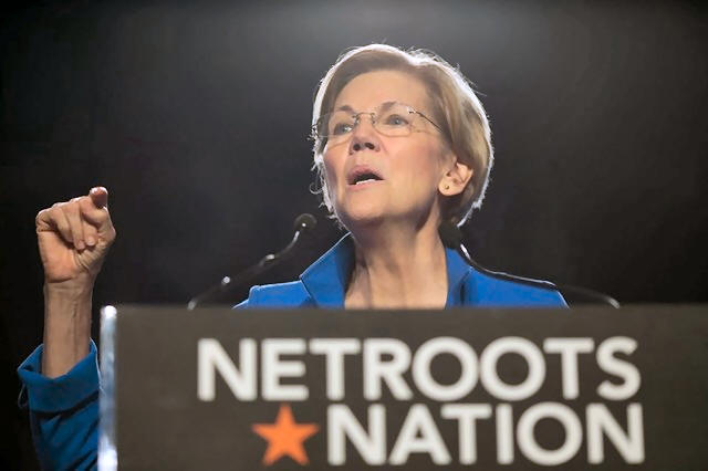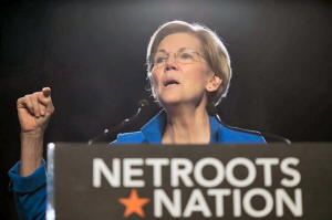 Senator Elizabeth Warren (D-MA) addresses the audience at the