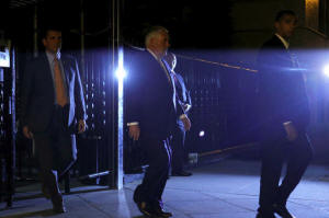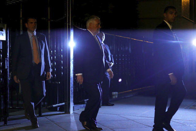 United States Secretary of State Rex Tillerson (C) leaves the Permanent