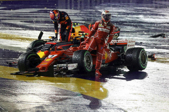 Ferrari's Kimi Raikkonen and Red Bull's Max Verstappen after