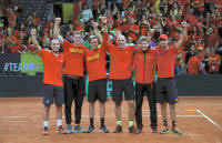 Belgium's David Goffin and Steve Darcis celebrate with