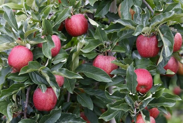 laden with apples stands in an orchard in Kressbronn