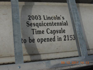 On that date, a small group gathered at the depot for a formal ceremony led by Lincoln historian Ron Keller and Mayor Beth Davis. The proclamation was given that the capsule would be retrieved from the earth in 2153, 150 years after its burial.