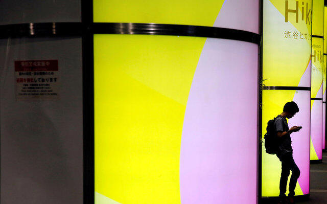 A man looks at his mobile at a shopping complex in Tokyo's Shibuya