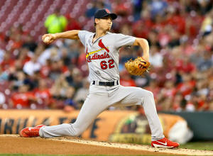 Cardinals starting pitcher Luke Weaver (62) throws against the