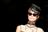 Artist Yoko Ono gestures during the opening of her exhibition
