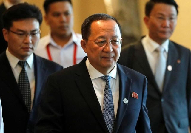 North Korean Foreign Minister Ri Yong Ho departs from his hotel