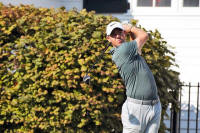 PGA golfer Rory McIlroy tees off on the third hole during
