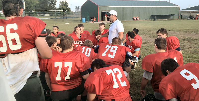 football coach Matt Silkowski talks with his plays about