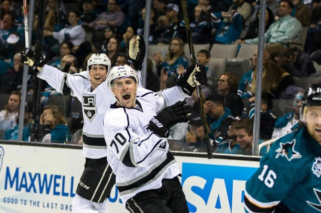 Los Angeles Kings left wing Tanner Pearson (70) celebrates scoring