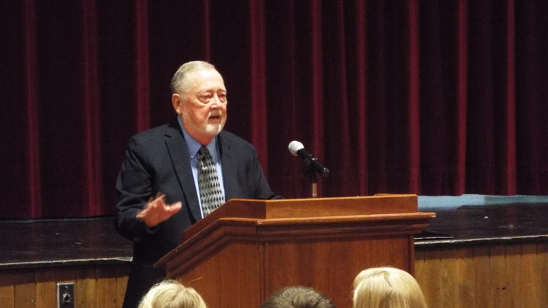 Mac went on to share memories of his students and his time in the theatre department at LCHS. He explained to the students in the audience that he used to help with Fall and Winter Play, Spring Musical, Group Interp, Contest Play, and something they no longer have, Radio Play.